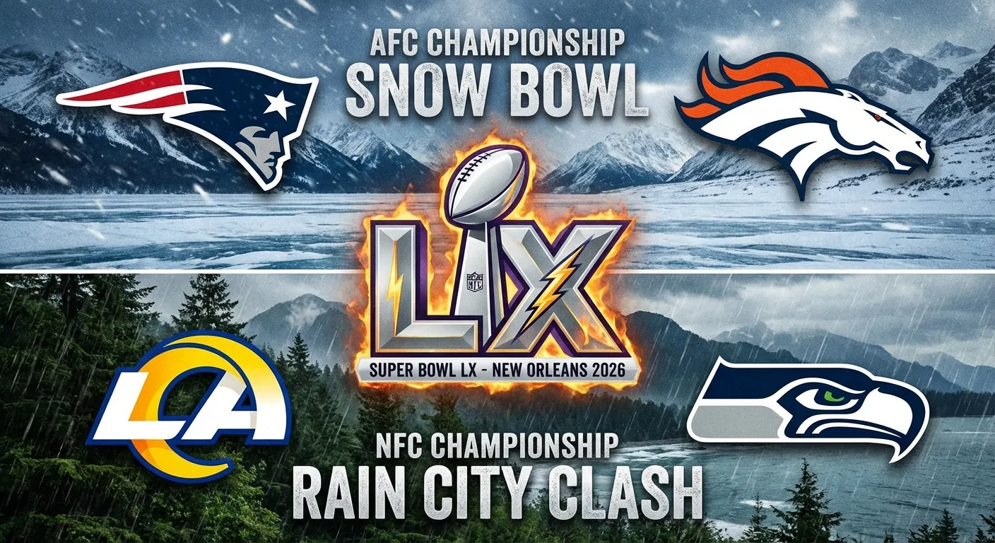 The NFL's final four have been set, and the storylines heading into conference championship weekend are better than any scriptwriter could manufacture. In the AFC, the New England Patriots will face the Denver Broncos, a matchup featuring a backup quarterback playing against his former team with a Super Bowl berth on the line. In the NFC, the Los Angeles Rams travel to Seattle to face a Seahawks team that just dismantled the San Francisco 49ers in the most lopsided divisional round game of the weekend. These four teams have navigated dramatic playoff victories to reach this point, and now only two games stand between them and Super Bowl LX in Santa Clara.